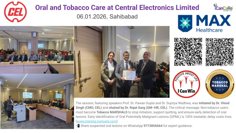 This initiative aligns with MISSION STAGE ZERO – A War Against Oral Cancer, championed by ICanCare and I CAN WIN FOUNDATION, underscoring that early detection, timely intervention, and empowered community champions (Tobacco Marshals) are pivotal to preventing oral cancer and building a healthier, tobacco-free workforce.
